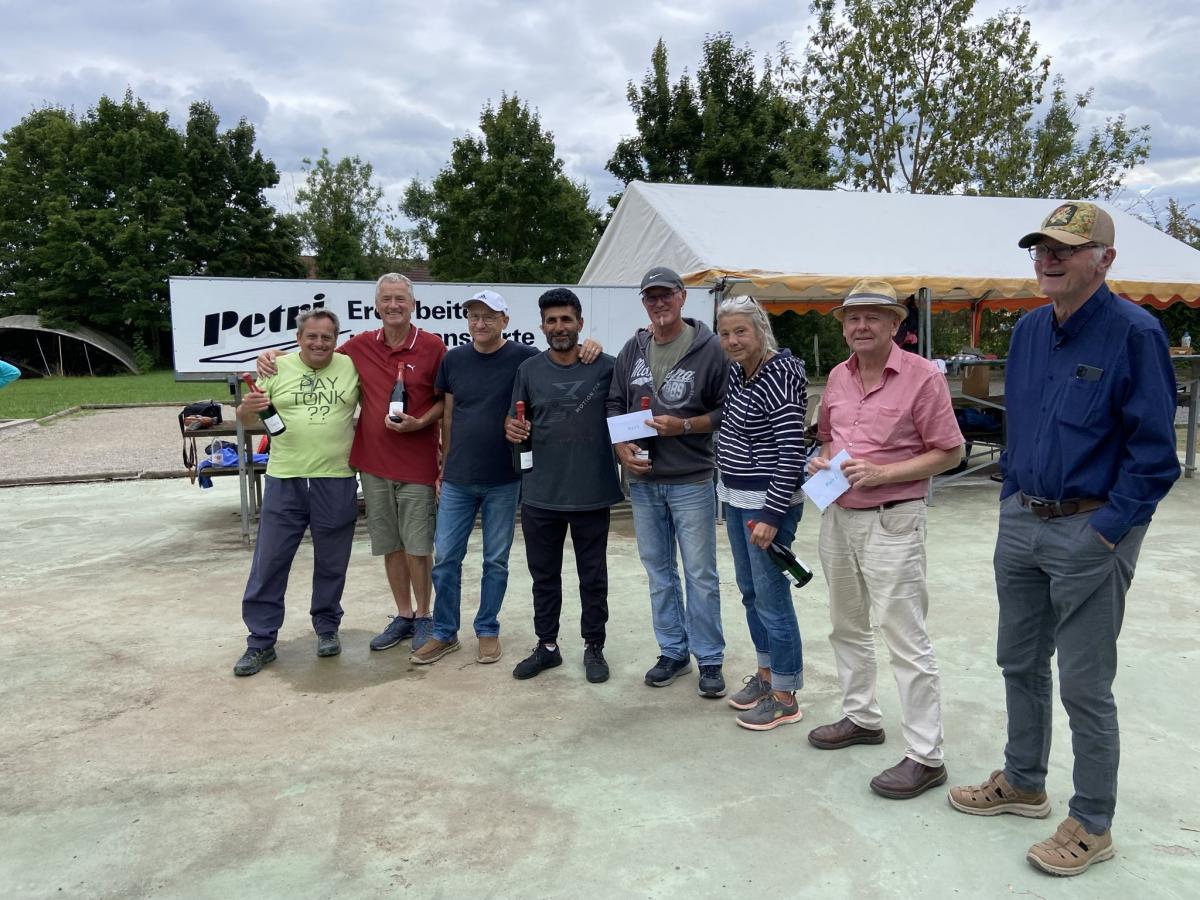 Insgesamt können wir mit dem Ergebnis und unseren Spielen sehr zufrieden sein. Insgesamt kamen bei uns 10 Boule-Spieler aus der 1. Mannschaft und der 2. Mannschaft zum Einsatz.