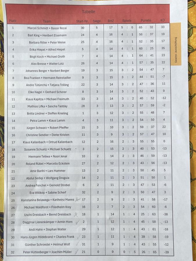 Die meisten anderen Teams bedankten sich aber für die gute Organisation und den guten Ablauf des Turnieres, lobten unsere Anlage und die gute, schnelle und freundliche Bewirtung und erklärten, im nächsten Jahr auf jeden Fall wiederkommen zu wollen.