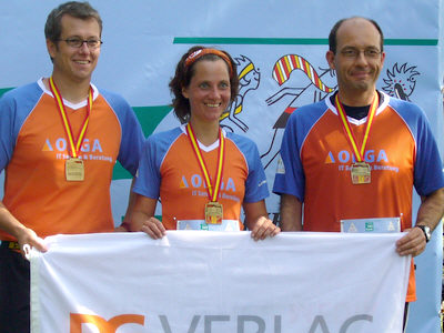 Bereits zum 41. Mal fand der Mainzer Volkslauf am Samstag, den 23. September 2006 statt. Über 11 km für die TGW im Ziel: Heike Charissé und Achim Heuer. Und tags drauf gab es im Rahmen des Baden-Marathon in Karlsruhe einen BusinessTeamMarathon. Hier war Thomas Petz dabei. (Auf dem Bild im Kreise seiner MannschftsKollegen bei der Siegerehrung. ) Das Wetter meinte es fast schon zu gut mit den Läuferinnen und Läufern, die am Samstag Nachmittag verschiedene Distanzen im Wald zwischen Mombach und Budenheim in Angriff nahmen: