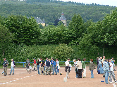 Boule im Rheingau zu Füßen von Schloss Vollrads, am Rande der Weinberge und mit einem Seitenblick auf Schloss Johannisberg – dazu rheingautypisch gutes Wetter, südliches Flair, hervorragender Wein – das ist fast wie in Süd- Frankreich. Bis zu 200 begeisterte Zuschauer umrahmten in der Vergangenheit die Finalspiele am Sonntagnachmittag. Ein parallel ausgetragenes Beachvolleyballturnier bietet zusätzlich guten Sport und trägt zum südlich anmutenden Urlaubsfeeling bei. Ach ja, Sieger werden bei uns traditionell mit Wein aufgewogen - es macht einfach viel Spaß, dabei zu