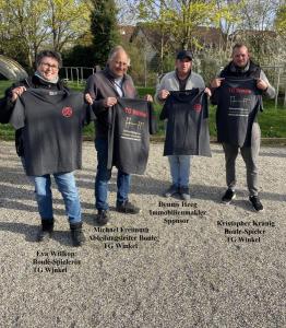 Am letzten Freitag, rechtzeitig vor dem Beginn der Liga-Saison, brachte Dennis Heeg Mannschaftstrikots mit dem TG-Winkel Vereinslogo und seinem Firmenlogo vorbei.