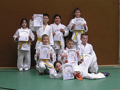 Karsten Brudy belegt ebenfalls nach drei gewonnenen Kämpfen einen ersten Platz in der Gewichtsklasse 32 Kg. David Mladinovski wurde in der Gruppe 14 ebenfalls Erster. Pascal Engelmann und Jean-Paul Janata bekam jeweils einen dritten Platz. Pascal bestätigte somit seine Bronzemedaille vom Vorjahr. Jean-Paul war einer der jüngsten Teilnehmer. Für ihn galt es, erste Erfahrungen mit dem Wettkampfjudo zu machen. Jannis Freund hat erst vor kurzem zum Judosport gefunden, hat sich aber in kurze Zeit ein ausreichendes Repertoire an Techniken angeeignet, um an einer Meisterschaft teilnehmen zu können. Mit einem gewonnenen Kampf hat Jannis einen wohlverdienten dritten Platz belegt.