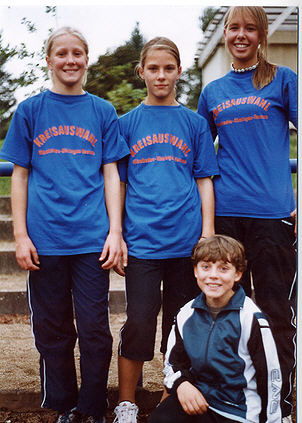 ![]() v.l. Julia Glock, Yvonne Kraft, Julia Kiss, vorn Leon Bixenmann | Die Bilder können durch Anklicken vergrößert werden | ![]() Kreis Mehrkampfmeisterschaft 2005 in Geisenheim |