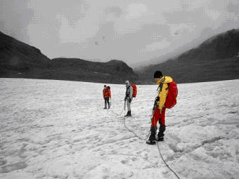 Dann lernten wir die Gefahren kennen. Gletscherspalten queren, nicht ängstlich aber immer mit Respekt.