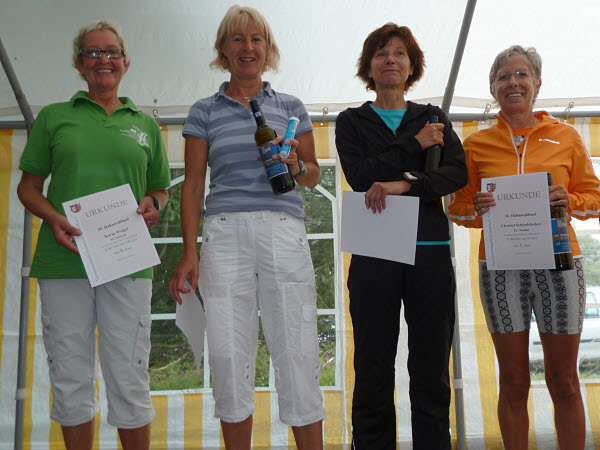 Kurz vor dem Start gab es noch ein paar Tropfen Regen, aber dann hielt das Wetter wenigstens während des Laufs. Unter 123 Läuferinnen und Läufern gab es für die TGWler gute Platzierungen, dies allerdings mit Zeiten, die durchweg schlechter waren als erhofft. Christel belegte Platz 1 in der AK W60 mit einer Zeit von 55:14 min, Martina ebenfalls Platz 1 in der AK W50 mit 52:52 min. Damit war sie die fünft-schnellste Frau. Ebenfalls einen ersten Platz belegte Achim in der AK M55 nach 47:07 min. Hans kam in der AK M60 auf den sechsten Platz, er brauchte hierfür 53:55 min. Hatte das relativ angenehme Wetter den Lauf noch begleitet, öffnete der Himmel dann während der Siegerehrung doch noch seine Schleusen, aber dies tat der guten Stimmung im Zelt keinen Abbruch. Dank an das tolle Orga-Team (die Ergebnisse hingen schon aus, kaum dass der letzte Läufer über die Ziellinie gekommen war) und Gratulation an die Läuferinnen und Läufer.