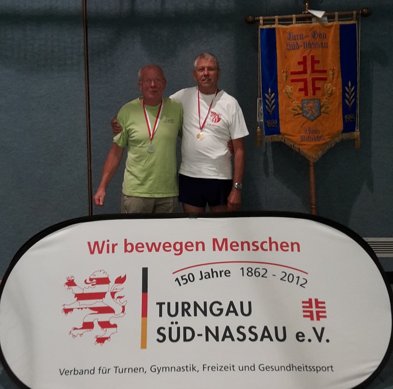 Foto: Links Wilfried Eckerich, rechts Manfred Hütter (M75-79) von der Gaualtersriege