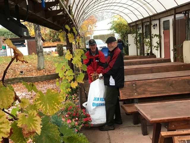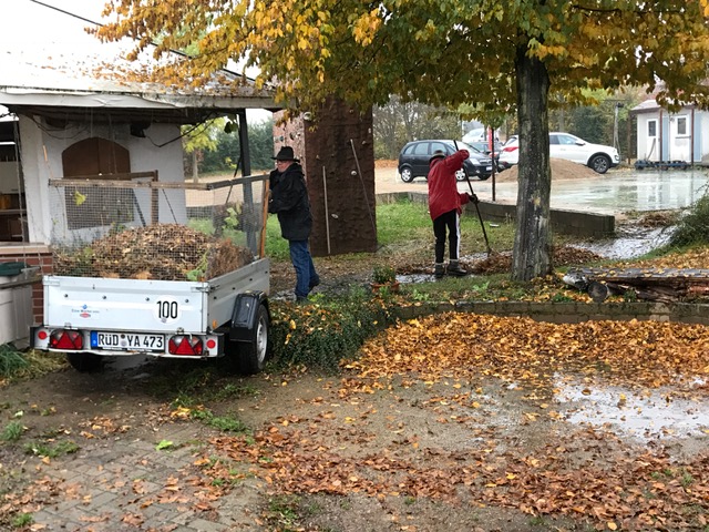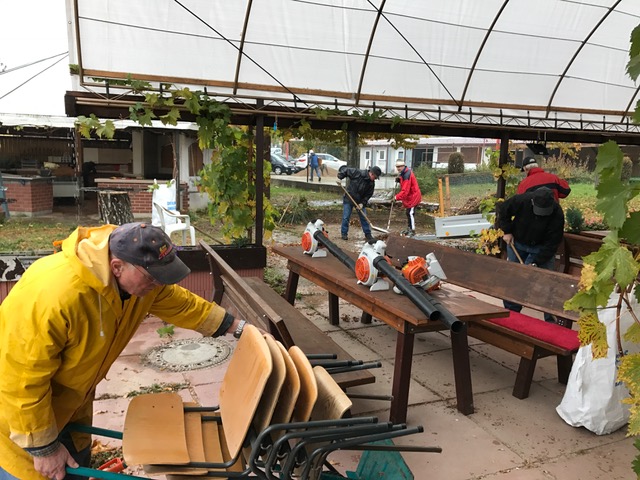 Stömender Regen hinderten die Mitglieder nicht, den Freizeitpark winterfest zu machen. Nur das Schneiden der Hecken musste auf einen anderen Tag verschoben werden.