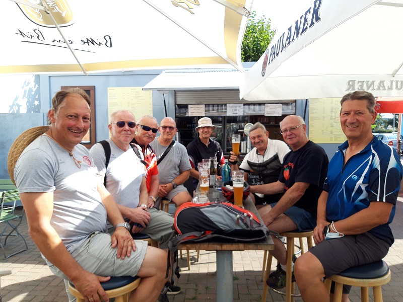Dieses Jahr startete unsere Fahrradtour bei super Wetter an der Fähre nach Ingelheim mit Fahrtrichtung Mainz zur Schiersteiner Brücke. Eine Trinkpause legten wir in Budenheim neben der Glashütte direkt am Rhein ein und weiter ging es über die Brücke in den Schiersteiner Hafen zur Arche Noah.